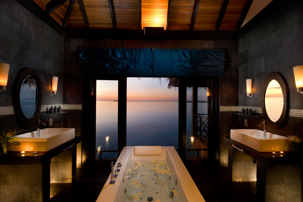 In a place of powder-white sands, crystalline seas and castaway beauty, what could be more soothing to the soul than watching the sun set in paradise while enjoying a long soak in a bath designed for two? At the recently re-launched The Beach House at Iruveli Maldives revel in romance and gaze out from a private tub across the sweeping Maldivian horizon.